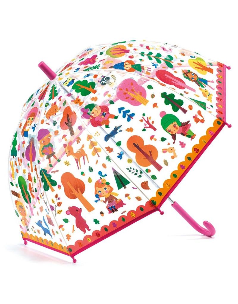 ¡Te damos la bienvenida al bosque más alucinante! Alegra tus días de lluvia con este vistoso paraguas transparente, repleto de ilustraciones inspiradas en la naturaleza.