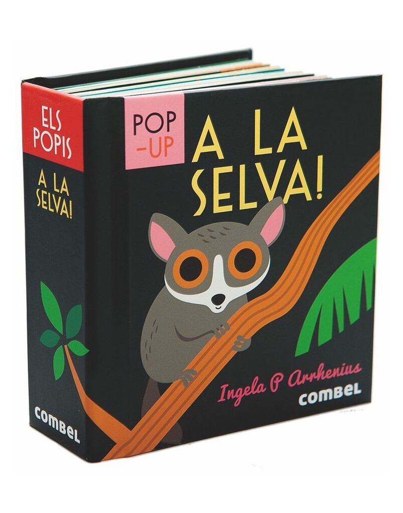 Un libro pop-up para manos pequeñas que invita a descubrir los elementos de la selva con construcciones de papel y dibujos de colores vivos de Ingela Arrhenius.