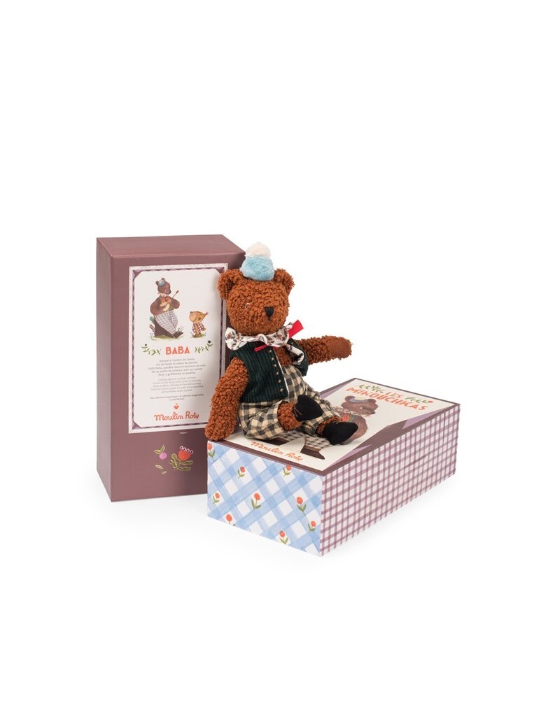 Baba es el oso de peluche más tierno, que acompañará en las mejores aventuras. Sus pantalones vichy y elegante chaleco lo hacen único y muy especial. Será de aquellos juguetes que quedarán en el recuerdo.