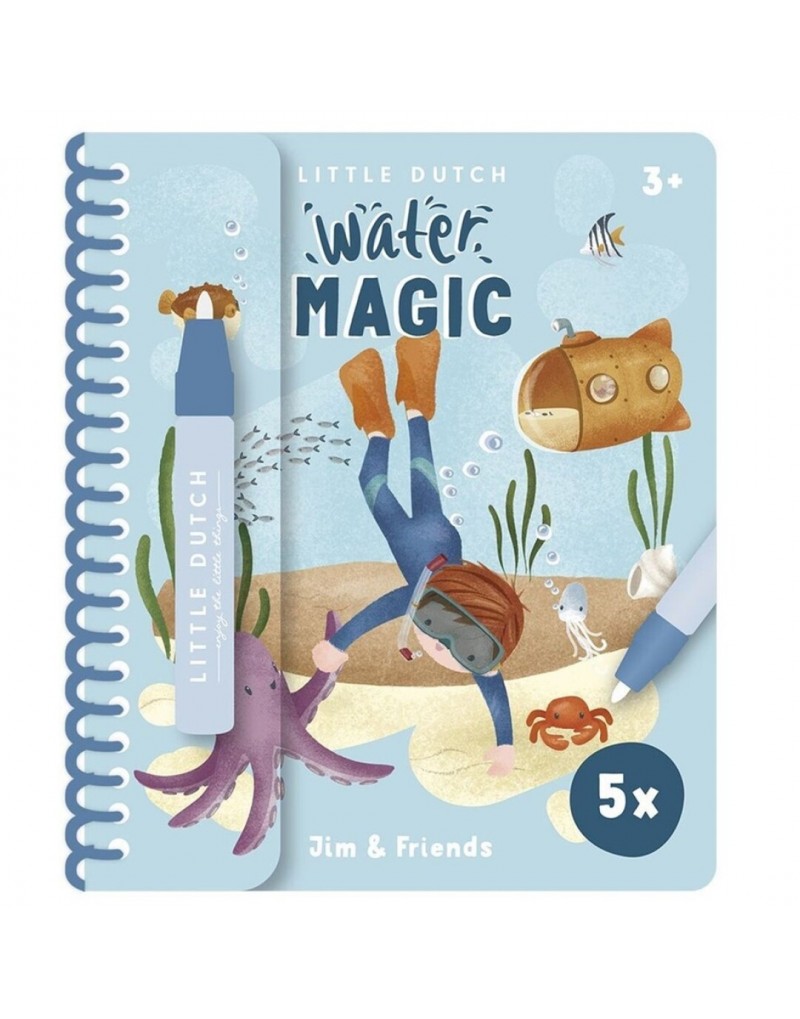 Libro con anillas mágico para colorear con agua de la colección Jim & friends. Contiende 5 páginas reutilizables y un bolígrafo especial para pintar con agua. Con tapa dura, ideal para jugar en casa o para llevar.