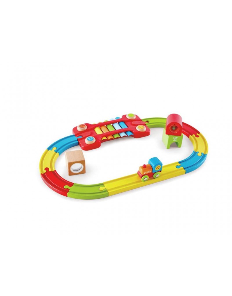 Incluye una pista musical de xilófono, un sonajero, una pista arcoíris, una locomotora llena de color, un arco y un espejo.