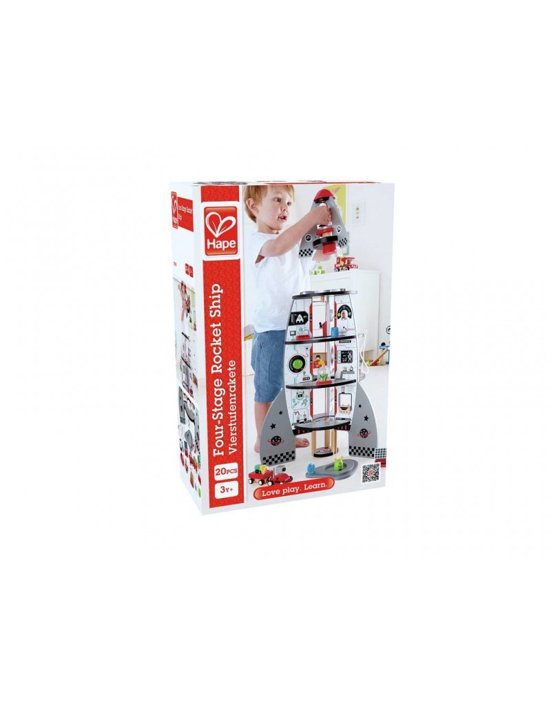 Un cohete espacial de madera de veinte piezas tiene cuatro pisos con habitaciones para explorar y descubrir las funciones de la nave. Viene incluso con pista de aterrizaje planetario separable para que la tripulación pueda explorar.