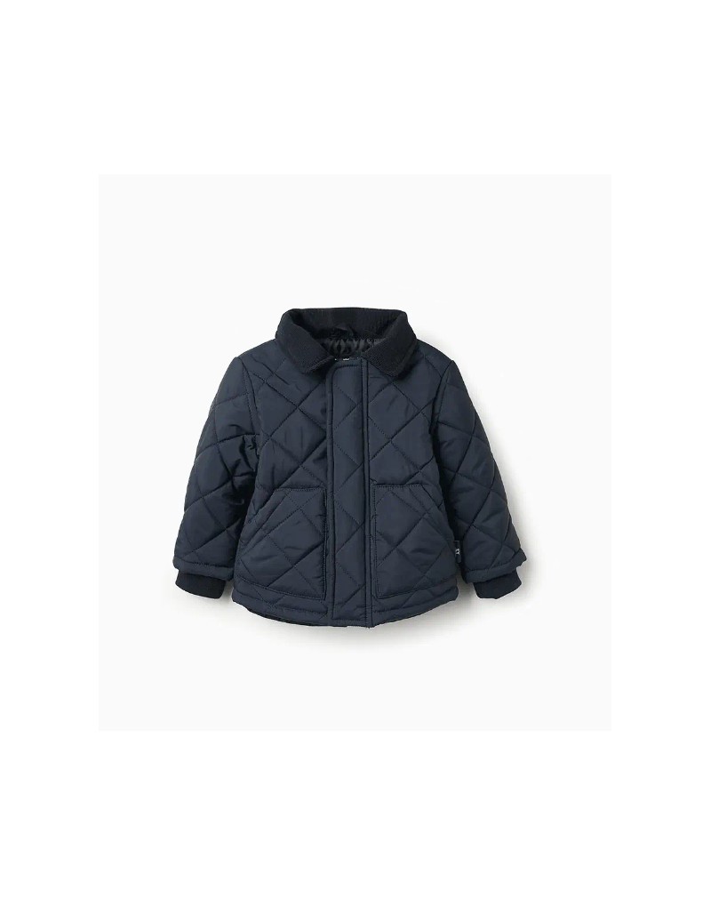 Abrigo acolchado para bebé niño, con cuello de pana. Capucha desmontable para mayor flexibilidad. Bolsillos frontales. Se abrocha fácilmente con cremallera y automáticos. Puños interiores acanalados para un ajuste perfecto. Un clásico del armario, ideal para las salidas de invierno.