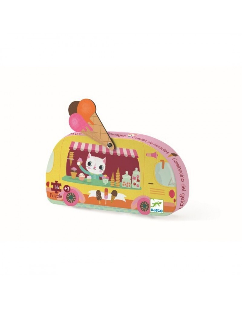 Un puzzle muy especial para los más pequeños. Con una caja que servirá como parte de la decoración, este juego incluye 16 piezas para armar un camión de helados.
