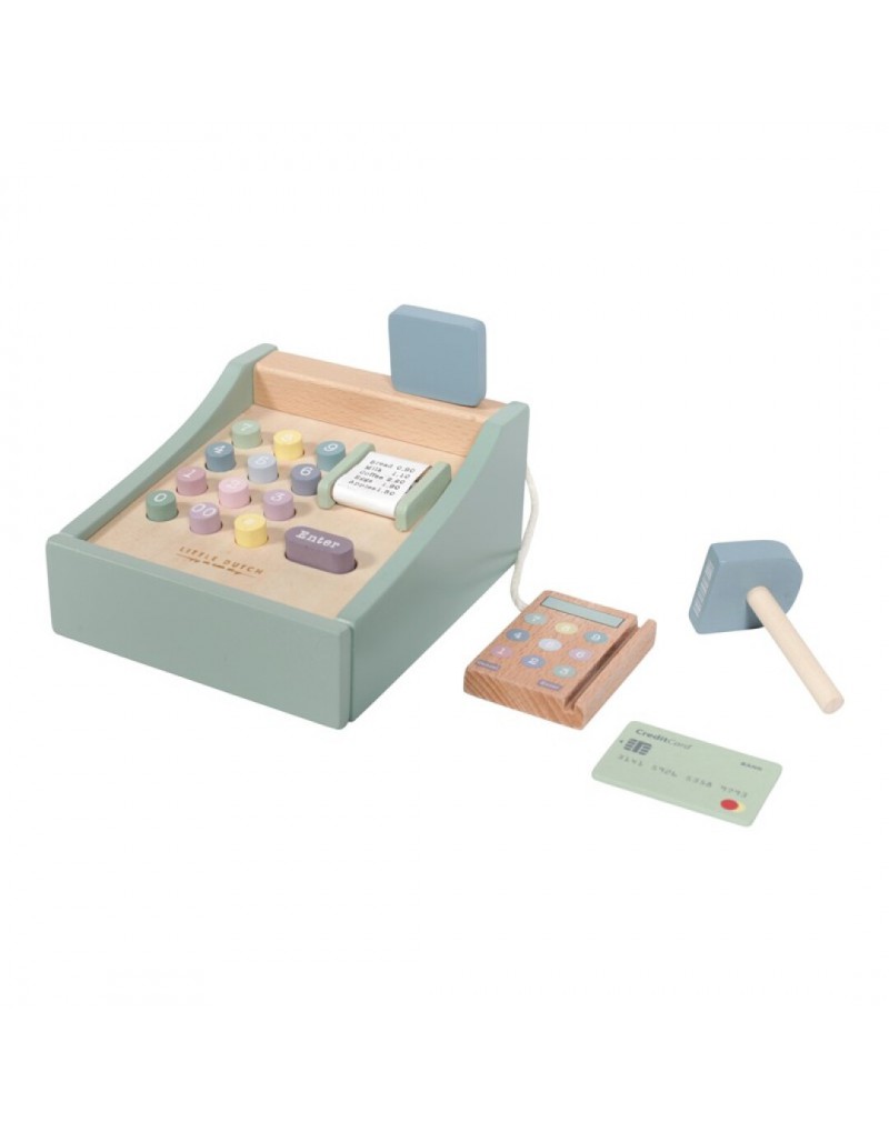 Esta caja registradora de madera es perfecta para horas de juego de rol. La caja registradora Little Dutch incluye un escáner, botones de números, un cajón para el dinero en efectivo, dinero y datáfono y tarjeta de crédito.