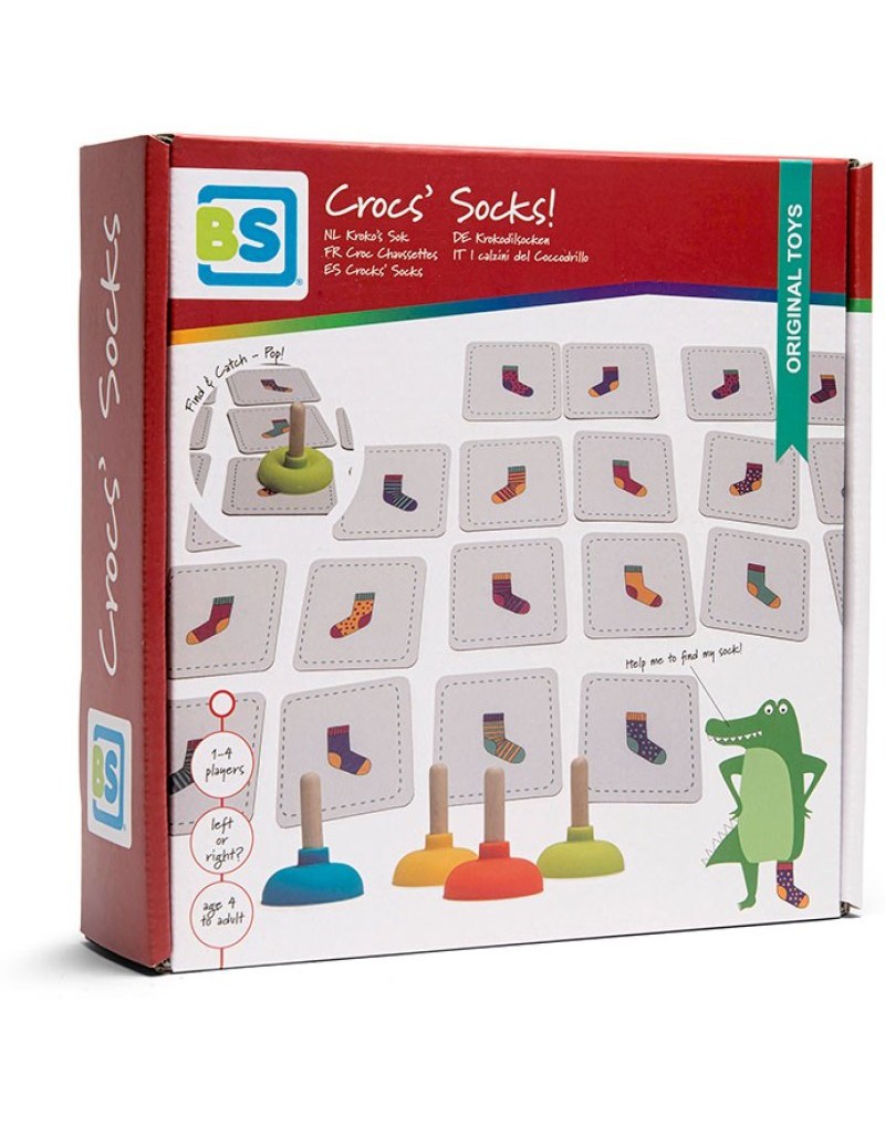 El cocodrilo esta confundido, esta buscando sus calcetines pero no encuentra un par que haga juego. Da la vuelta a una carta y se el primero en atrapar el calcetín perdido con tu ventosa , pero cuidado!..el cocodrilo necesita su calcetín derecho o izquierdo?
