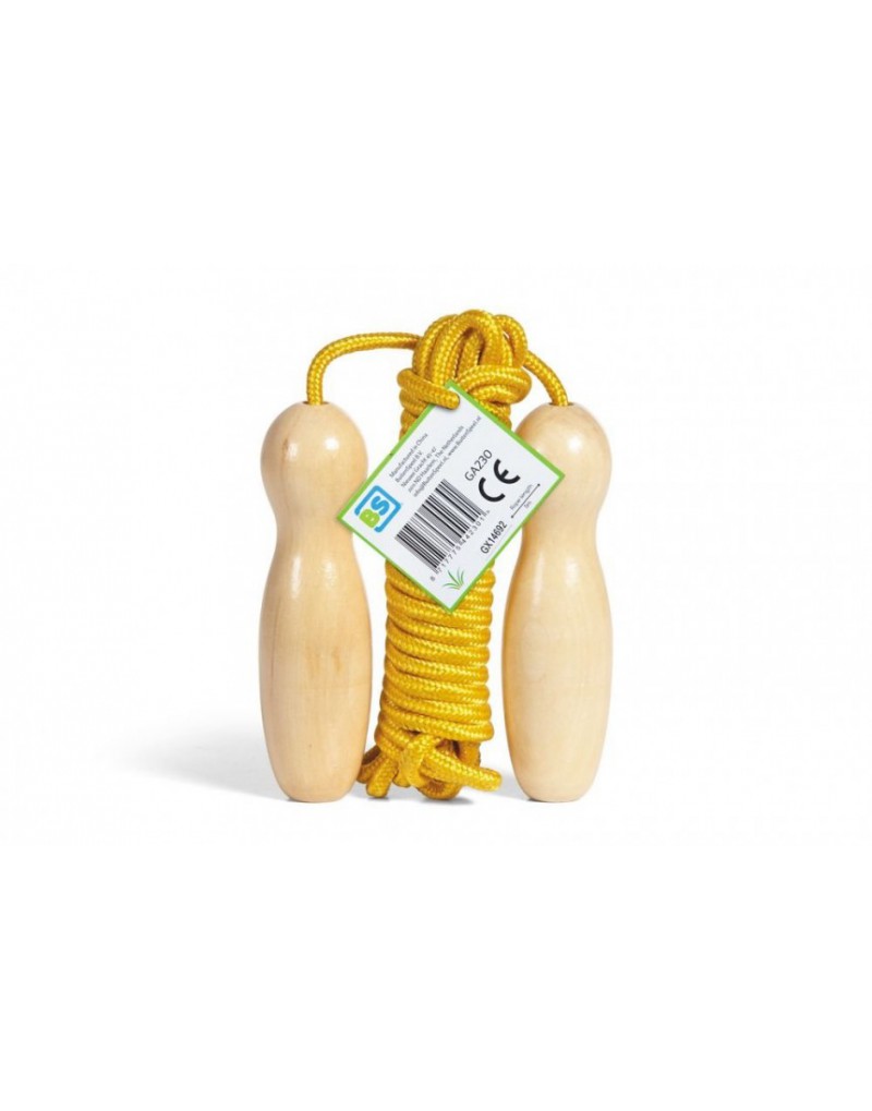Cuerda para saltar extra grande para que todos puedan saltar juntos. La comba está hecha de madera y algodón y tiene una longitud de 500 centímetros.
