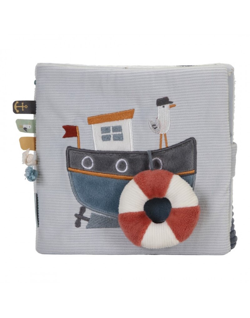 Libro blandito de actividades con la temática del barco. Tiene diferentes texturas para que los peques experimenten de forma sensorial.