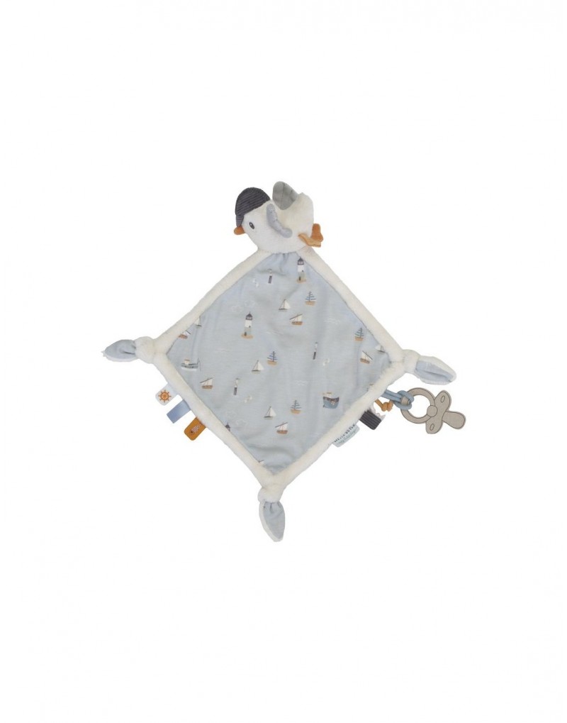 Doudou de la nueva colección de Sailors Bay de la marca Little Dutch. Tiene una linda gaviota, nudos, etiquetas, y se le puede sujetar un chupete.