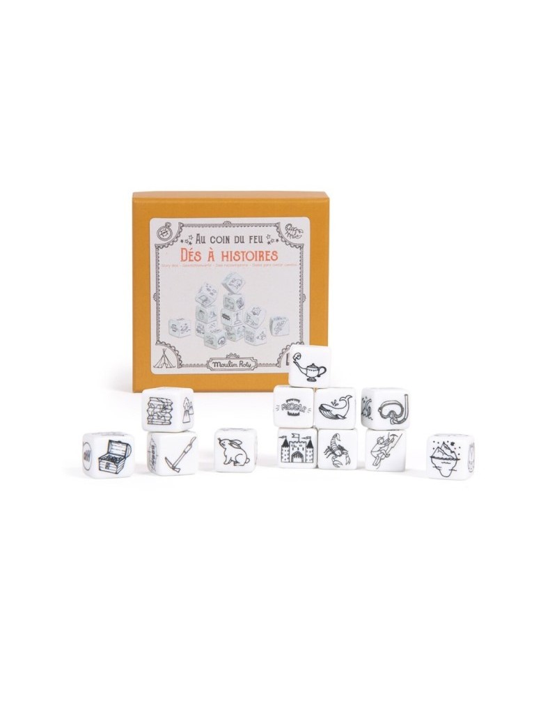 Los dados de cuentos de la colección de El Jardín de Moulin de Moulin Roty, son 12 dados con ilustraciones diferentes para inventar historias. Tendrás que tirar los dados y a partir de lo que te toque, narrar una historia. Habrá giros inesperados y mucha diversión. Es perfecto para que desarrollen la resolución de conflictos y la agilidad mental.