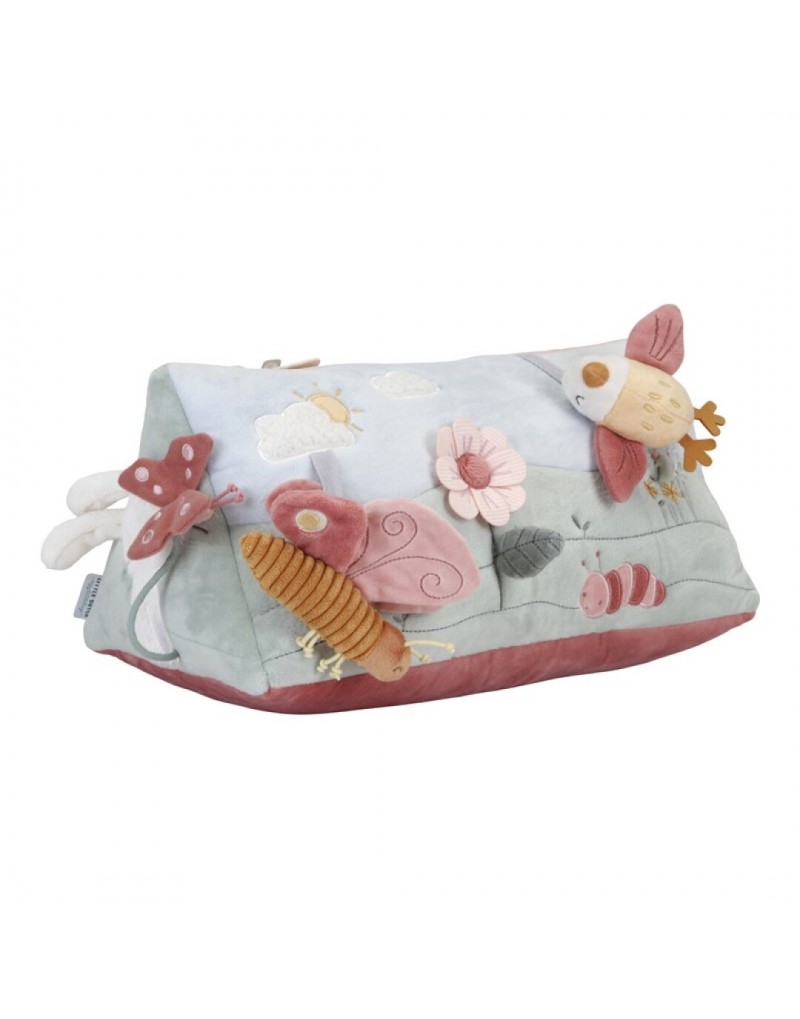 Explora la naturaleza con el pajarito Abby y sus amigos. Representado en un triángulo de atractivos tonos, esta actividad super suave despertará la curiosidad de su bebé. Hay mucho por descubrir estando boca abajo. Cada lado presenta un actividad y se viste de varias texturas, formas y características estimulantes.