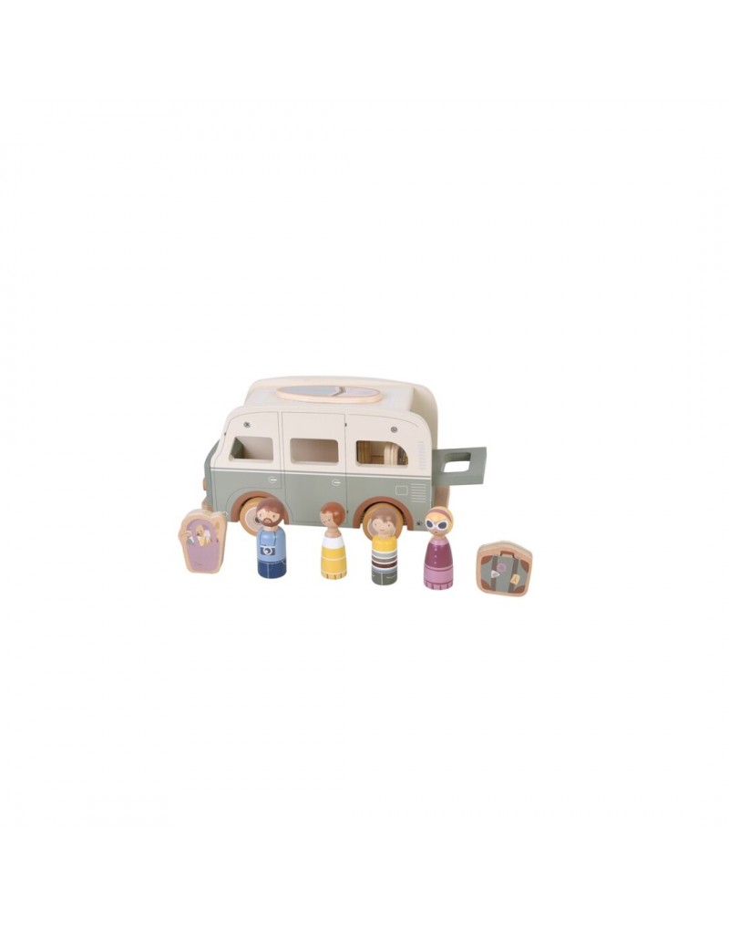 ¡Vamos a dar un paseo juntos! Levanta el techo de tu furgoneta retro y coloca los muñecos encajables en su interior.Furgoneta retro con accesorios como tabla de surf, maleta y bolsa de la compra en bonitos colores retro.