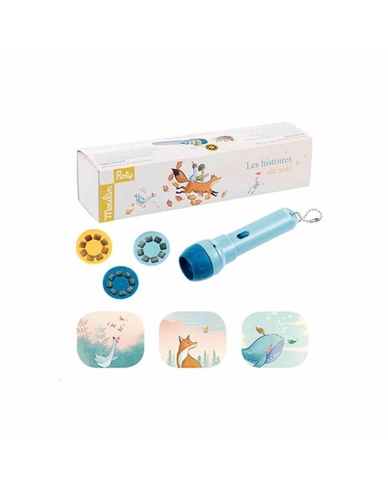 Una linterna de cuentos con 3 historias intercambiables del Viaje de Olga. Contarle una historia a tu peque o que te la cuente a ti antes de ir a dormir… ¡es el plan perfecto!