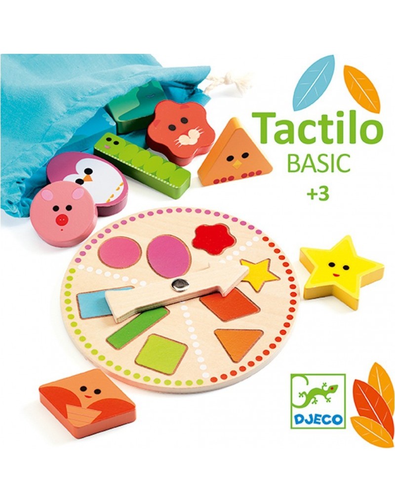 Un juego de percepción sensorial para jugar con las formas, las texturas y el sentido del tacto. 9 formas se esconden dentro de la bolsa y esperan a ser descubiertas. Un juego de reconocimiento táctil para trabajar las formas geométricas. El niño hace girar la ruleta y busca la forma correspondiente en la bolsa sin mirar.