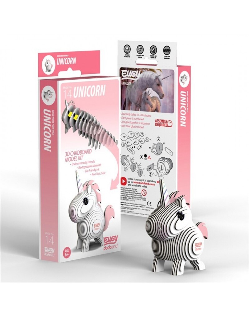 Divertidas figuras de cartón montables en 3D. Son sencillos de construir. Se requiere entre 20-30 minutos. Cada pieza está numerada y se superponen en secuencia numérica usando un pegamento orgánico no tóxico incluido. Utiliza tinta natural hecha de arroz. Una simpática y didáctica manera de decorar los estantes de una habitación.