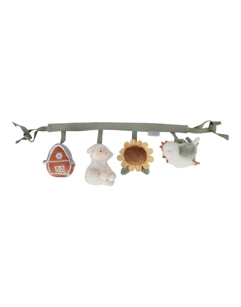 Este juguete de carrito de la nueva colección Little Farm de Little Dutch es fácil de enganchar a la sillita de coche o al carrito y proporciona horas de juego y diversión cuando estás en marcha con los juguetes que lleva, un sonajero, un espejo, un juguete. crujiente. Además estimula la coordinación ojo-mano.