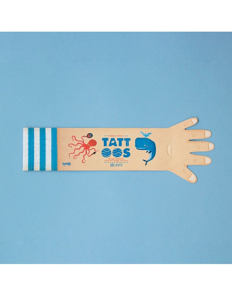 10 tatuajes infantiles temporales de animales del mar y criaturas del océano para aplicar sobre distintas partes del cuerpo.