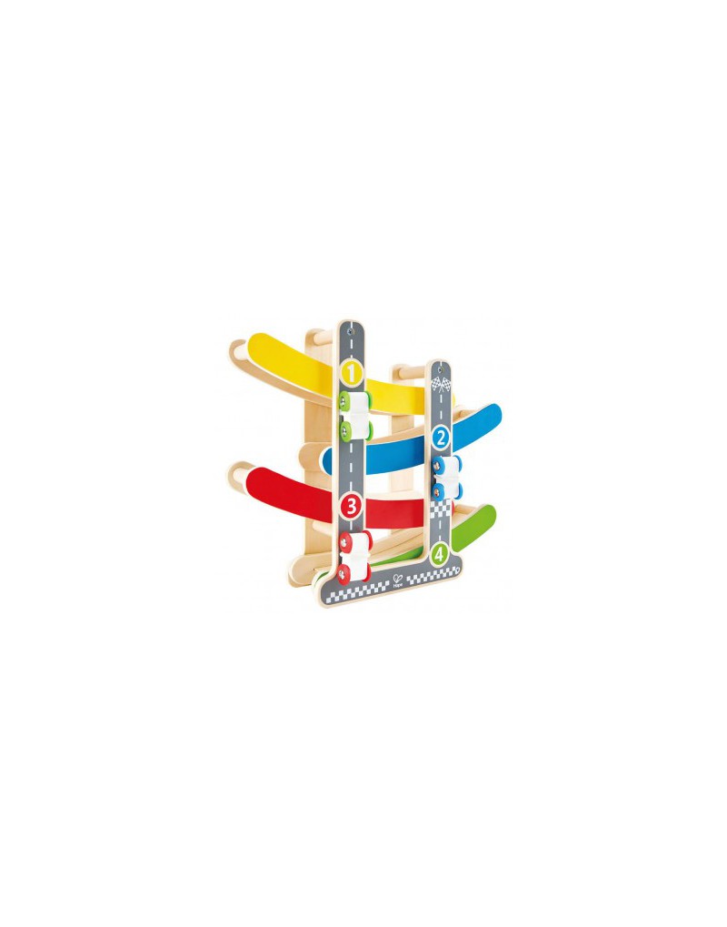 ¡Mira cómo giran tus coches de carreras unos sobre otros mientras bajan por el circuito de coche de carreras de HAPE! ¿Qué coche de carreras crees que ganará? ¡Haz una competición con todos ellos y apunta los resultados! Edad: +18m