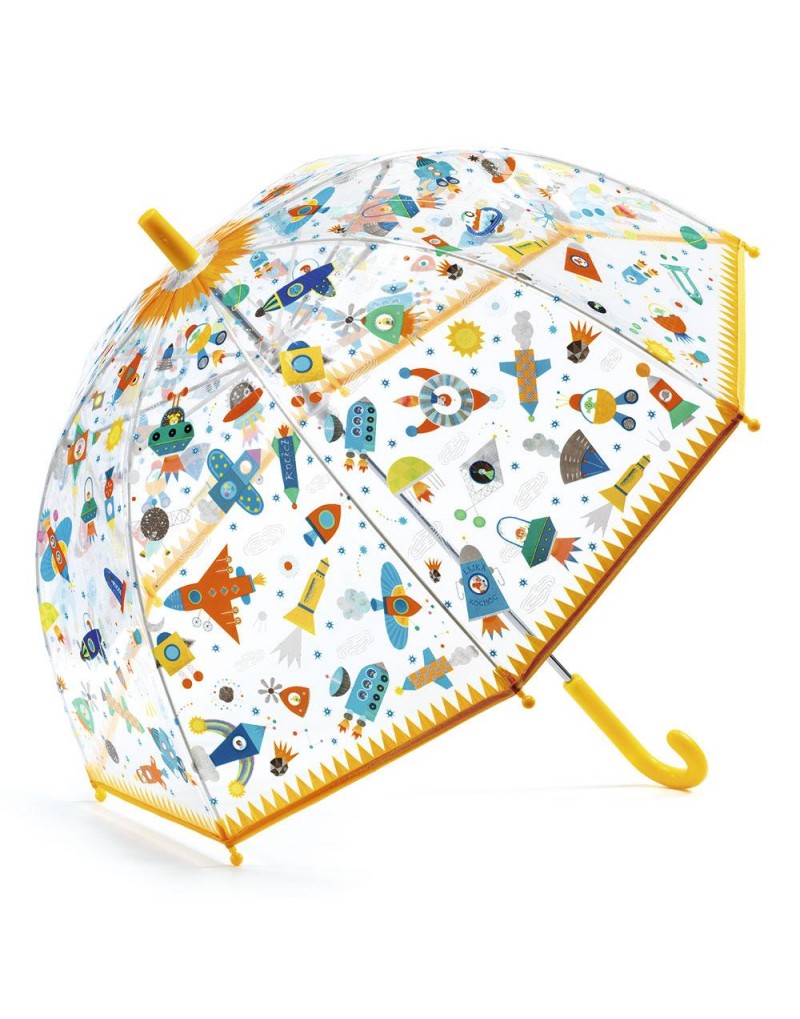¡Te damos la bienvenida al universo más alucinante! Alegra tus días de lluvia con este vistoso paraguas transparente, repleto de ilustraciones inspiradas en el espacio.