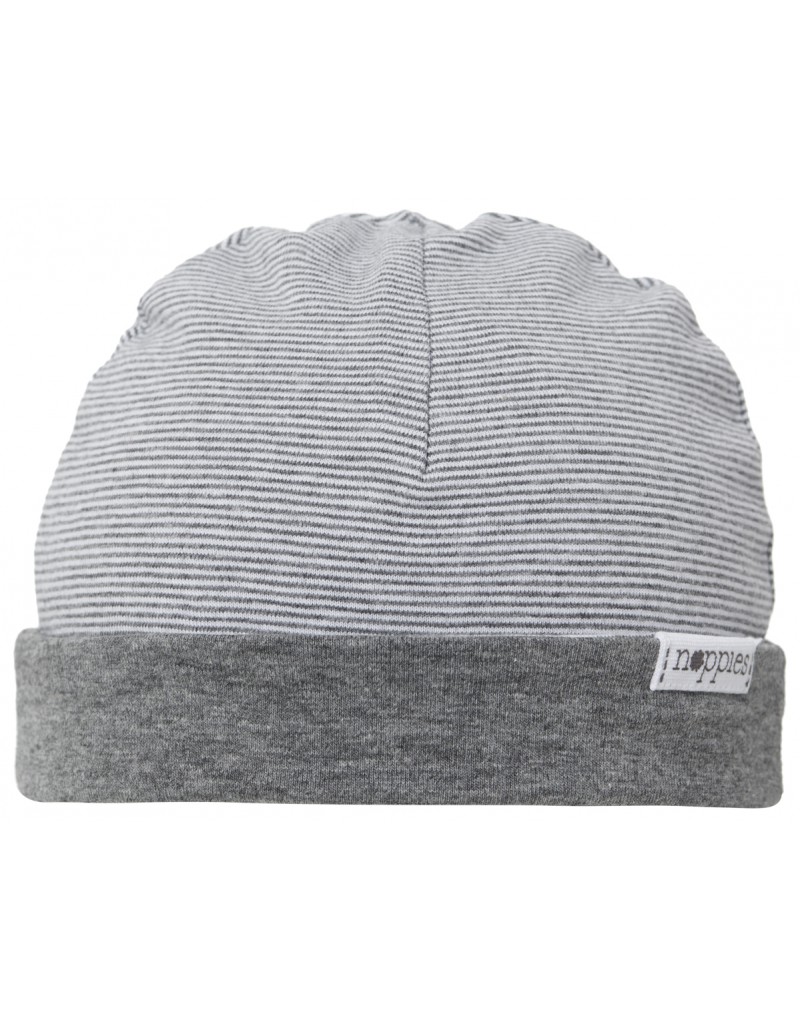 Gorrito bebé niño color gris con rayas blancas. Tejido: algodón orgánico y elastane.