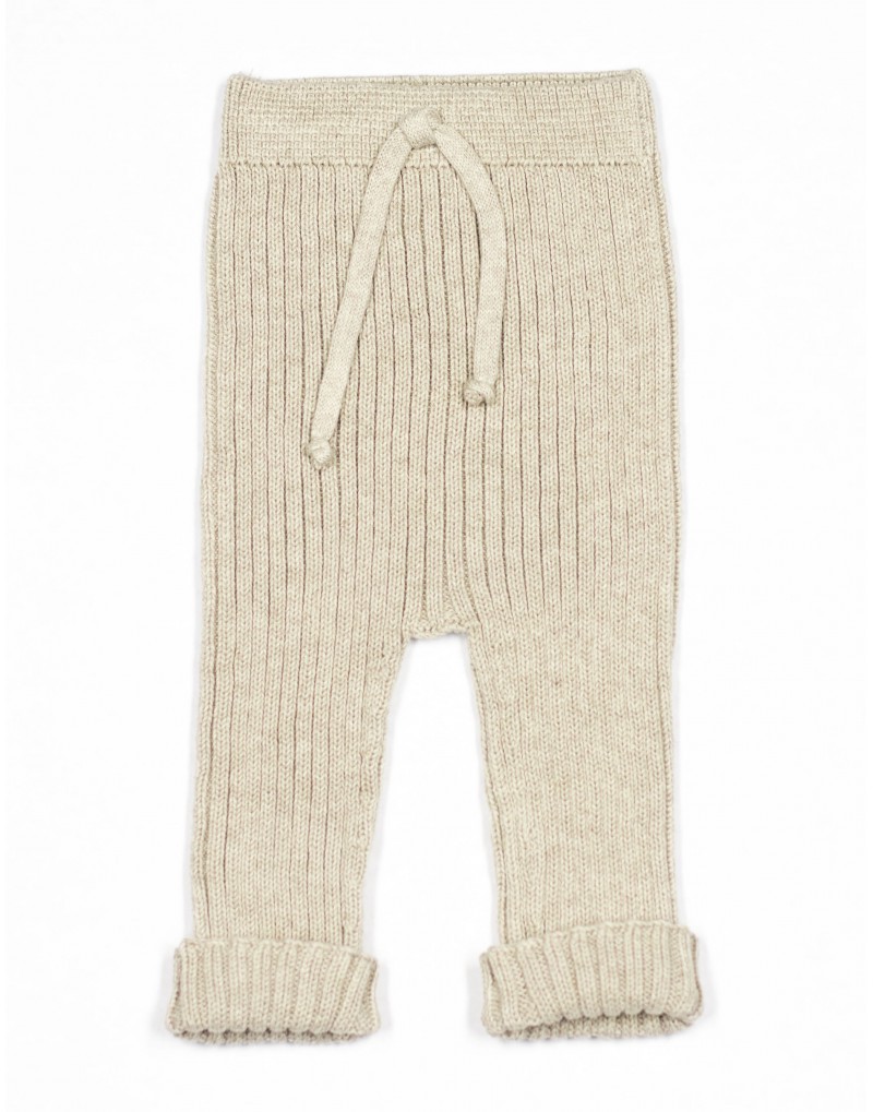 Pantalón canalé manga larga de bebé Li&Me de color piedra. Goma en la cintura y en la parte inferior. Tejido: algodón