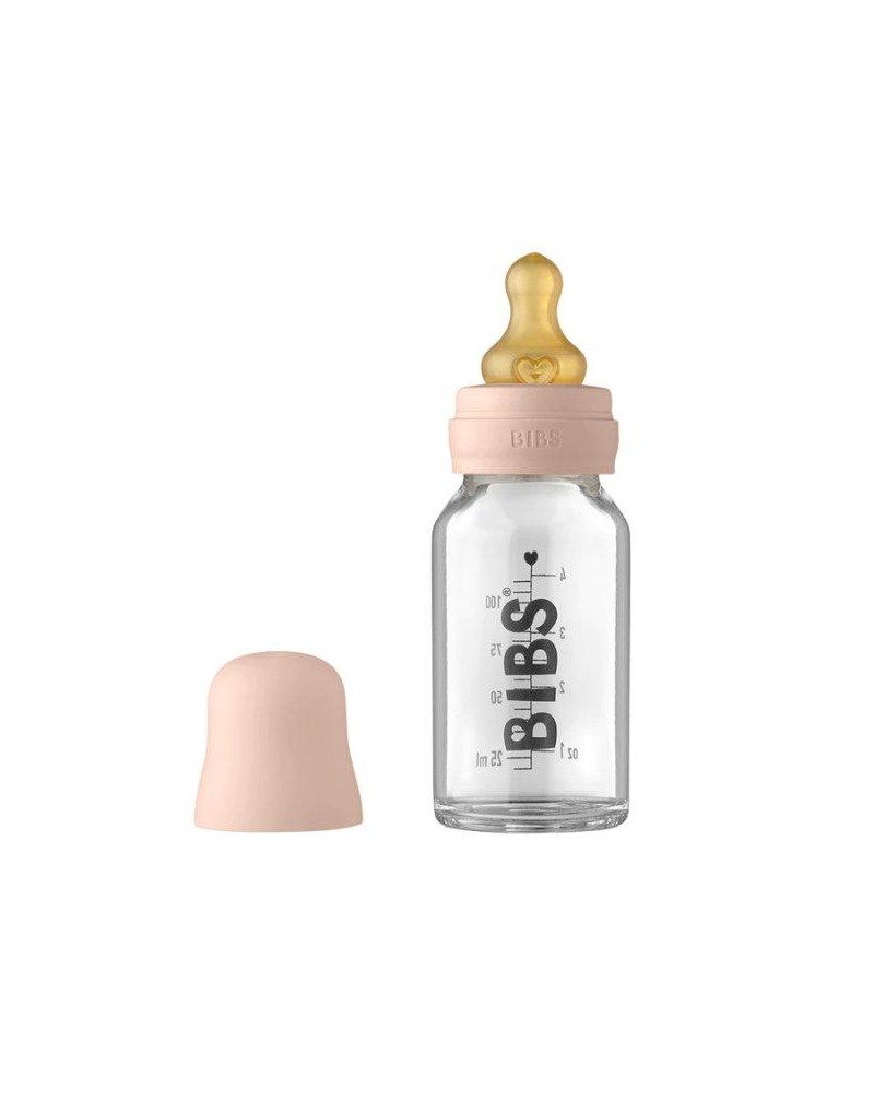 Biberón compuesto por botella de cristal, tetina redonda, tapa, disco sellador perfecto para evitar que se derrame al agitar el biberón. Además, también incluye un embudo plegable y así evitar derrame.