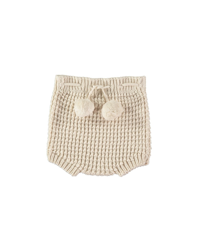 Braguita bebé Li&Me de color blanco roto con un cinturón ajustable con un pompón en cada punta. Tejido: algodón.