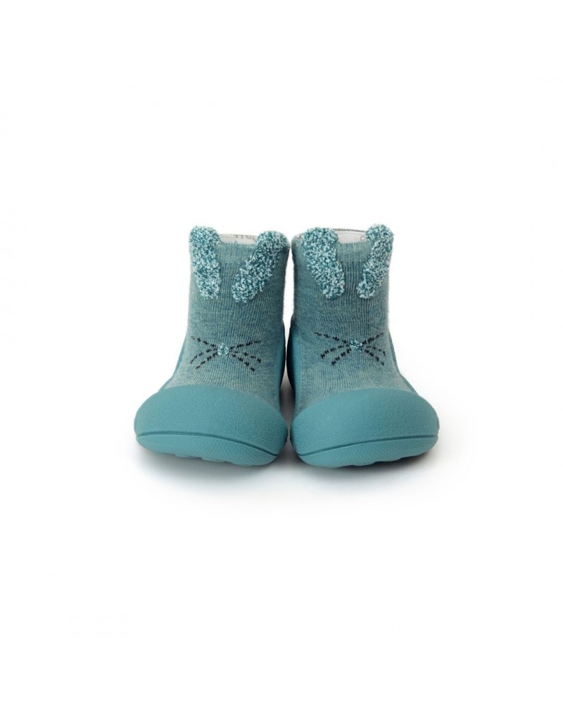 Rabbit llega para los peques más dulces. Un modelo minimalista en tonos azul y menta diseñado en tejido vigoré y con detalle de orejitas de conejo en relieve.