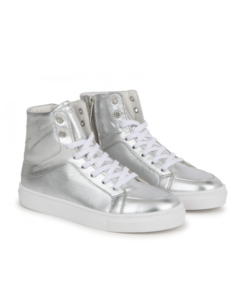 Zapatilla alta de piel de Zadig & Voltaire en tono plateado brillante. Esta zapatilla con cierre de cremallera en la parte interior es ideal para deslumbrar a todo el mundo.