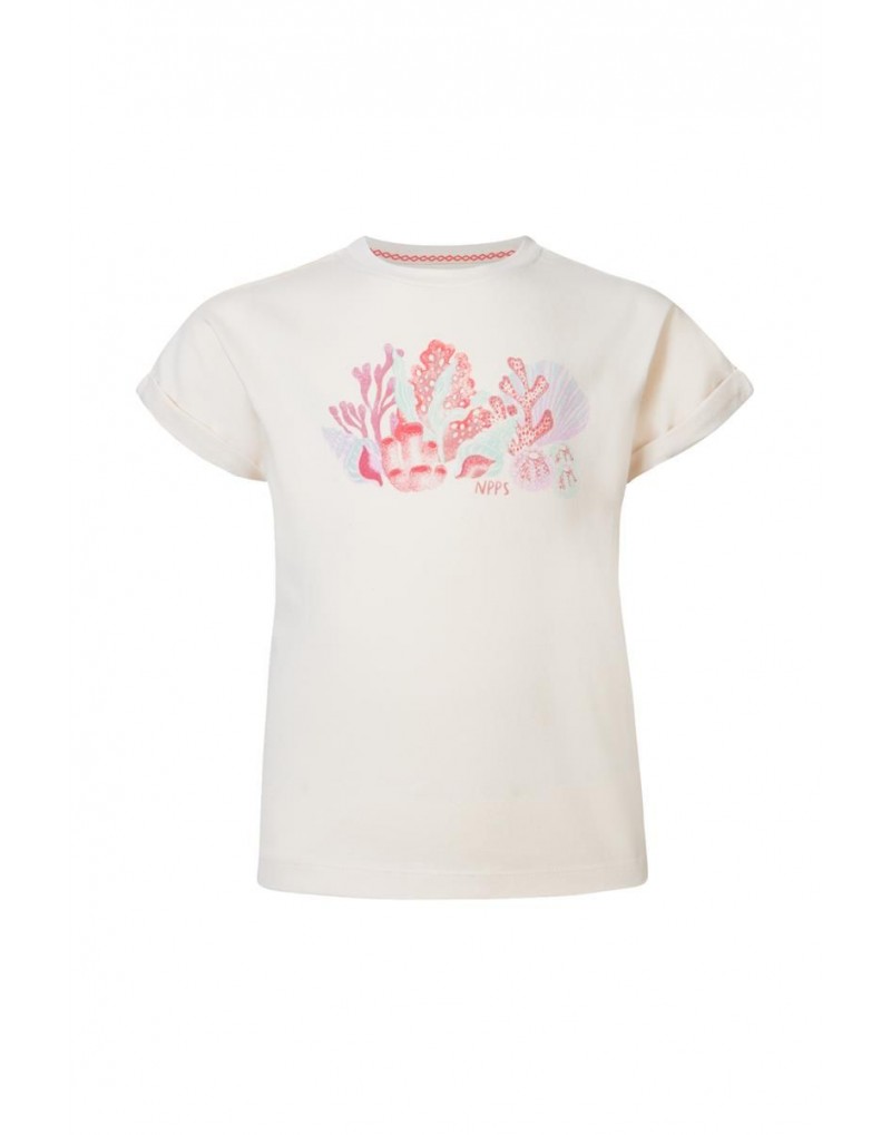 Los corales más bonitas están en esta camiseta de Noppies Kids. La camiseta en color crema Edmonton presenta un bonito estampado de corales en tonos rosados en la parte delantera y mangas vueltas para darle un toque fresco. Está confeccionado en algodón suave y elástico y es súper cómodo.