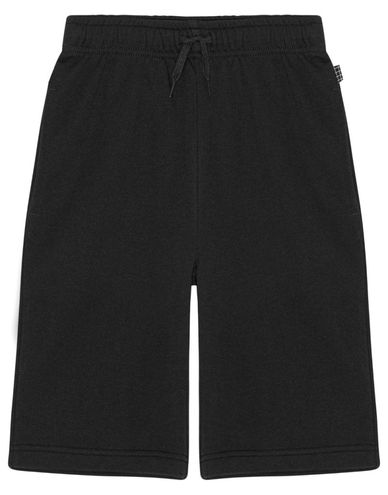 Pantalones cortos de baloncesto negros en una suave mezcla de algodón y poliéster. Tienen una cintura elástica con cordón, bolsillos laterales y un único bolsillo trasero. Son de corte holgado.