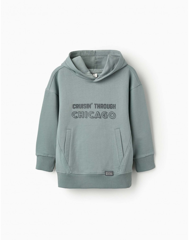 Sudadera con capucha para niño, en mezcla de algodón, con interior perchado para mayor confort térmico. Estampado en relieve en la parte delantera. Base y puños acanalados para un ajuste perfecto. Bolsillo canguro. Una sudadera práctica, cómoda y de moda.